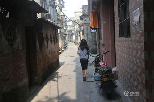 杨女士介绍,小杰之前在老家读小学,暑假与9岁的姐姐一起赶来广州与家人团聚。“本来火车票都提前买好了,她伤口还没全好,又不想让同学看到她的脸伤成这样,就没跟着姐姐一起回去。”杨女士与丈夫商议,想让小杰在附近上学,好多点照顾她、帮她恢复伤情。图为被割脸小女孩母亲走过事发小巷回家。