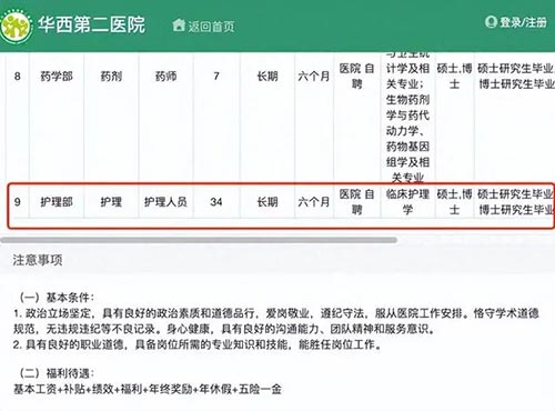 原标题:华西第二医院招34名护士要求硕士博士引热议,院方回应:薪酬比较有竞争力