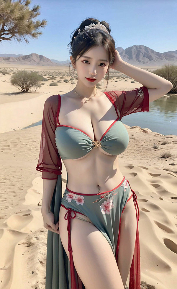 AI魔法秀之敦煌风美女沙漠里飘飘若仙2