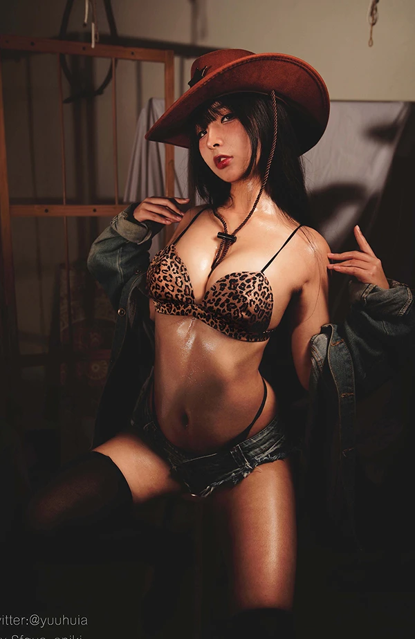 高颜值coser小姐姐@玉汇 豹纹牛仔+天台猫猫