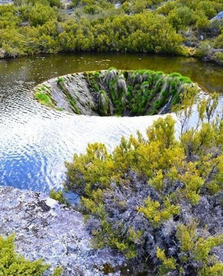 根据英国Express网站报道,葡萄牙埃什特雷拉山自然公园的一个湖上,竟然出现一个“地球破洞”,湖面上有一个巨大缺口,湖水不断涌进去。
