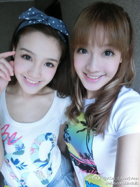 吴燕珊吴燕菁双胞胎组合名:大小Ann(也叫AOA)。姐妹经历:曾经在网络上被称为“最美双胞胎”,来头不小哦。她们可是地道的广州人,4岁开始学习芭蕾舞,有多年的舞台表演经验,课余时间还是公共频道签约的主持人,面对镜头已经是从容自如,而且心灵相通,可以摆出一模一样的POSE。