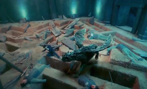 从 佛爷铜镜里看到攻击他的似乎是一只有翅膀的巨兽。难道说古墓下面埋有极其神秘的长生之药,穷奇便是看其的古代神兽之一?而之前在神秘军列上死亡的人全部都是面朝下的,似乎有什么东西压着他们。古墓真是越来越神秘了!
