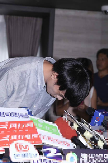 当媒体问胡睿儿吸毒时间长短,他却支吾其词,只表示错了就是错了,而女友林采缇是否知道他吸毒一事,他则否认两人是男女关系,并表示身边朋友没人知晓,媒体转问团员杨琳,他哭红双眼哽咽透露最近都在搬家,不知道胡睿儿有吸毒,还在场向大众保证他未来会管好团员(胡睿儿),以符合社会大众期待。2人在不到20分钟的记者会鞠躬超过20次,对支持的粉丝与朋友道歉。最后胡睿儿也发誓保证,这次事件绝对是他第一次也是最后一次。