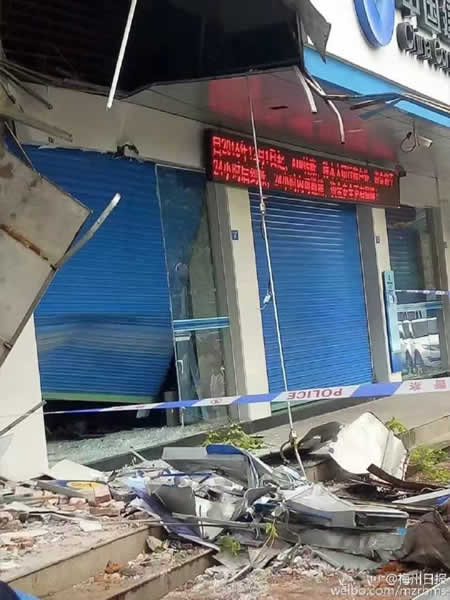 2016年12月25日5时30分许,罗某滔(男,29岁,大埔县湖寮镇人)驾驶1辆小型挖掘机将位于大埔县城内环西路富怡花园楼下的中国建设银行的4台柜员机损坏(无现金损失)。大埔警方接报后迅速出击,罗某滔被民警当场抓获,现场扣押作案使用的挖掘机和运载拖车各1辆。目前,案件正在调查中。