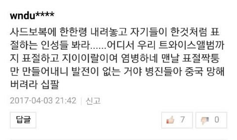 因为“萨德”挨了中国民意胖揍,正愁没地儿出气的韩国网友们借此大肆发挥。