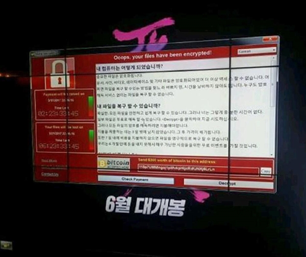 据韩联社报道,韩国某影院公司的负责人表示,从15日凌晨开始,部分影院的广告服务器就遭到勒索病毒的感染。影院一旦“中毒”,不论是放映厅内电影放映前的银幕,还是放映厅外的广告屏上,都会强制弹出勒索通知。