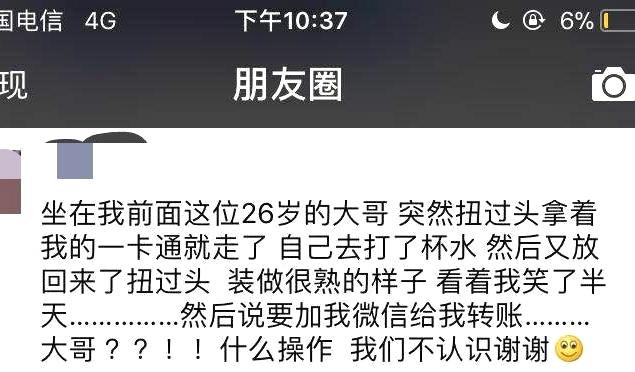 “自习室一男生好几次不打招呼,拿上我桌子上的水卡去打水,回头人家非要加我微信给我转账。”12月15日,山西一高校大四女生小米在朋友圈分享了自己的遭遇。天生丽质的小米追求者众多,自习室里一男生为了要微信搭讪便出此下策,结果反倒让美女反感。小米朋友圈里的好友回复,这是要微信的“新技能”啊。