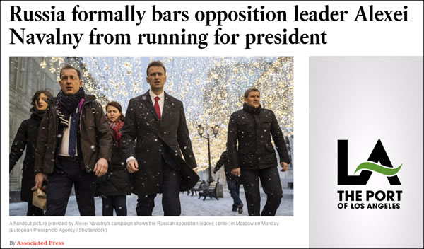 普京最大政敌被禁止参加俄罗斯总统选举