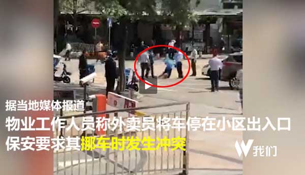 原标题:外卖员停车挡道起纠纷 遭小区保安持棍围殴