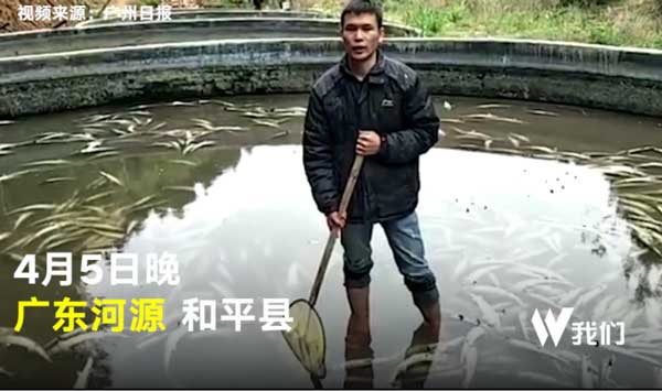 实拍广东河源一养殖场一万多条中华鲟死亡视频