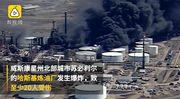 原标题:美国炼油厂爆炸,浓烟蔽日至少20伤