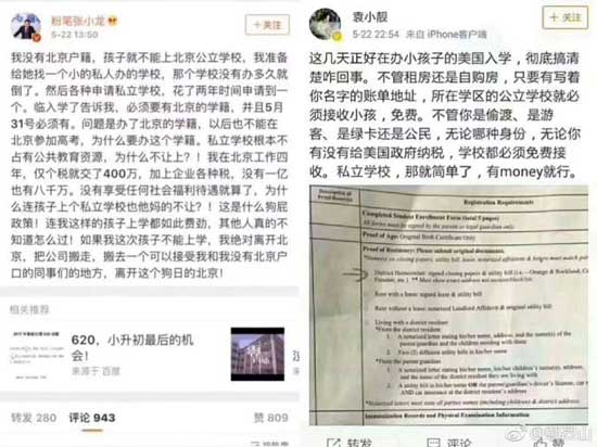 同样是5月22日,有网友将袁小靓晒孩子在美入学经历与粉笔CEO张小龙质问北京学籍政策对比,张小龙称:我在北京工作四年,仅个税就交了400万,加上企业各种税,没有一亿也有八千万。没有享受任何社会福利待遇就算了,为什么连孩子上个私立学校也**的不让?!这是什么**政策!连我这样的孩子上学都如此费劲,其他人真的不知道怎么过!”
