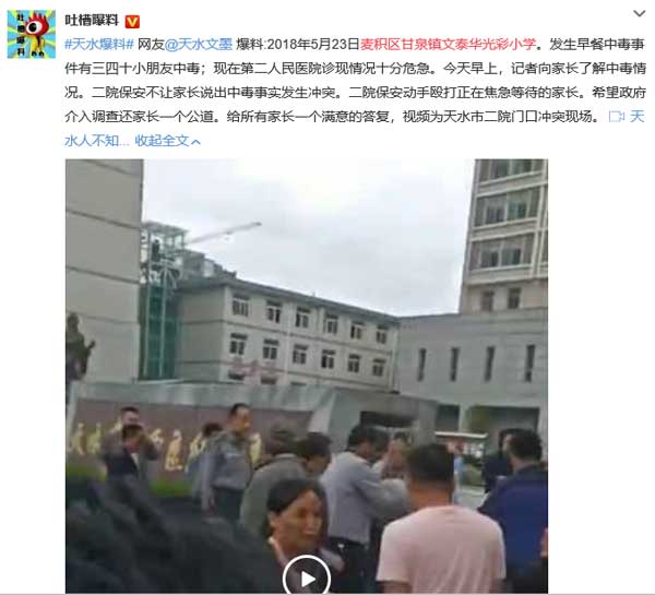 实拍天水文泰华光彩小学早餐中毒事件保安殴打家长视频