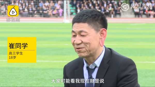 哈尔滨18岁的崔同学从初中时患上了一种罕见的面部松弛症,脸部肌肉都往下垂,面容看上去像长了一张80岁的脸一般。他笑称因自己长得慈眉善目,有同学喊他方丈。但在同学眼中他不仅是一枚标准的学霸,还是很会生活佛系青年。他自己也非常乐观:智商仍在线,比起一些人我已经很幸运了。