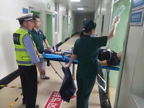 警车与120救护车先后到达板桥店服务区,民警发现2男2女正平躺在服务区休息大厅里, 120救护人员对4人进行了初步诊断和救治后,4人仍然头晕乏力并伴有呕吐现象。医生告诉民警,4人为一氧化碳中毒,特别是其中一老年妇女症状较为严重,目前都仍处在危险之中,需要及时送到医院进行进一步观察和救治。民警赶紧协助医护人员将这4名病人送上救护车,由于救护车内空间有限,只能载3名病人,民警便将1名中毒症状较轻的病人扶上警车。民警用警车开道,与救护车一道用最快的速度将病人送到医院。病人都得到了及时治疗,到18时20分病人全部脱离了危险。