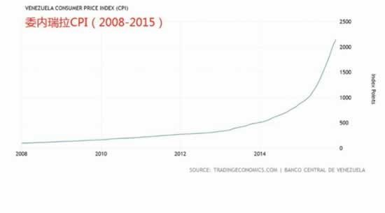 委内瑞拉已经连续多年遭受恶性通货膨胀,因为经济数据太不好看,官方停止公布部分重要经济数据,但根据相关机构研究显示,其通胀率2016年达到800%,2017年超过2700%。