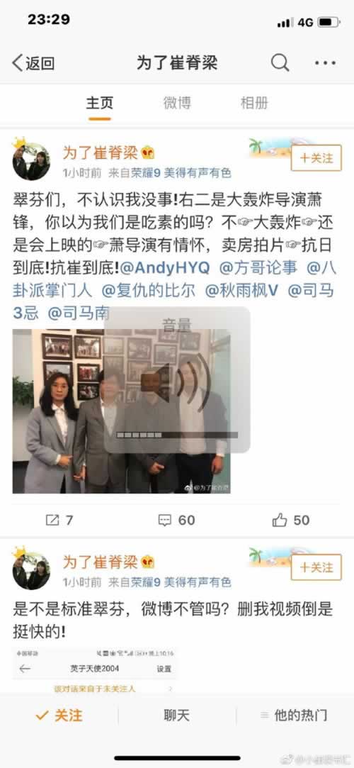 ▲ 图片来自微博截图。“为了崔脊梁“是不是四人之一?他发出微博后,崔永元于凌晨发了微博,揭露了几个人的丑行。