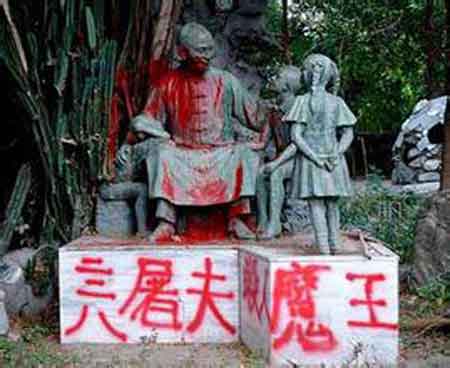 北一女学务主任叶中如表示,昨天中午警卫巡视校园吓然发现位在光复楼与中正楼间花圃里的蒋介石铜像遭台北市专用垃圾袋套在头部上。垃圾袋上面还用签字笔写着“何须纪念中正庙”、“杀人魔”、“纪念三小离开校园”等字眼,以封箱带贴在铜像嘴部并环绕颈部。