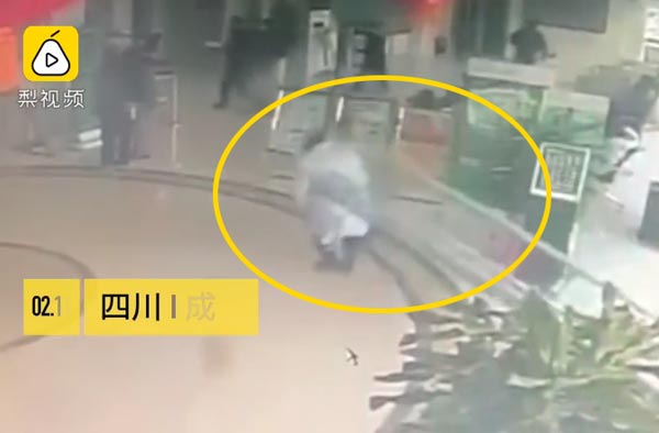实拍成都一银行玻璃门突然倒下砸中行人现场视频