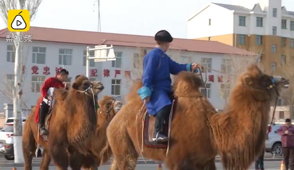 3月1日,内蒙古阿拉善额济纳旗蒙古族学校的孩子们迎来了一次特别的开学典礼,学生穿着蒙古袍,骑着骆驼和马到校报到。老师为学生们献上哈达、交换鼻烟壶。校长称这是为了传承传统文化,同时调动学生的学习积极性。