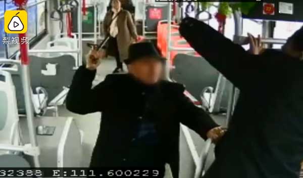 实拍湖南永州8旬老汉殴打公交女司机拐杖都打断现场视频