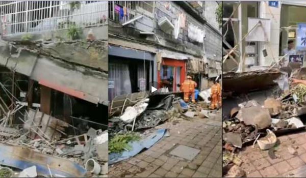 实拍杭州一小区二楼平台坍塌涉10多家店面现场视频