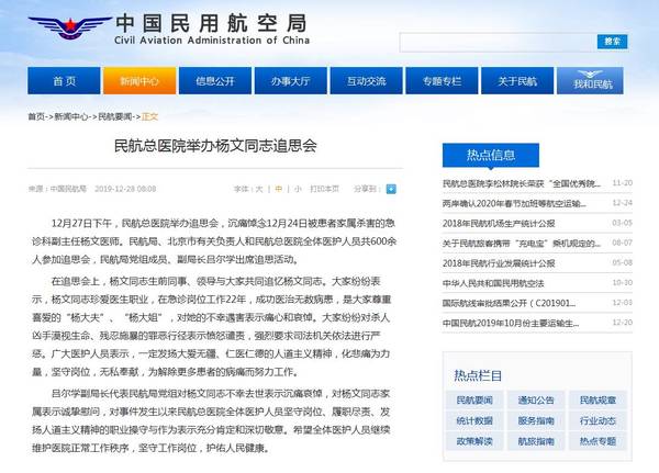 12月27日下午,民航总医院举办追思会,沉痛悼念12月24日被患者家属杀害的急诊科副主任杨文医师。民航局、北京市有关负责人和民航总医院全体医护人员共600余人参加追思会,民航局党组成员、副局长吕尔学出席追思活动。