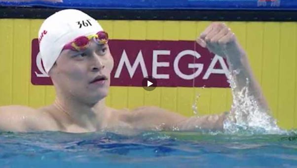 实拍孙杨400自由泳再夺冠军新年3冠1亚视频