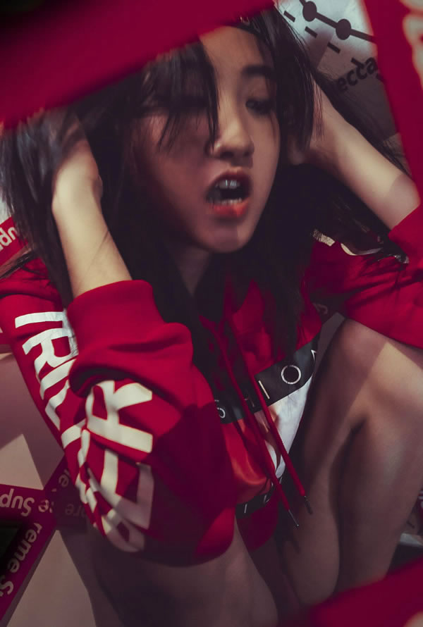 红皮衣女郎性感演绎激情无圣光人体写真