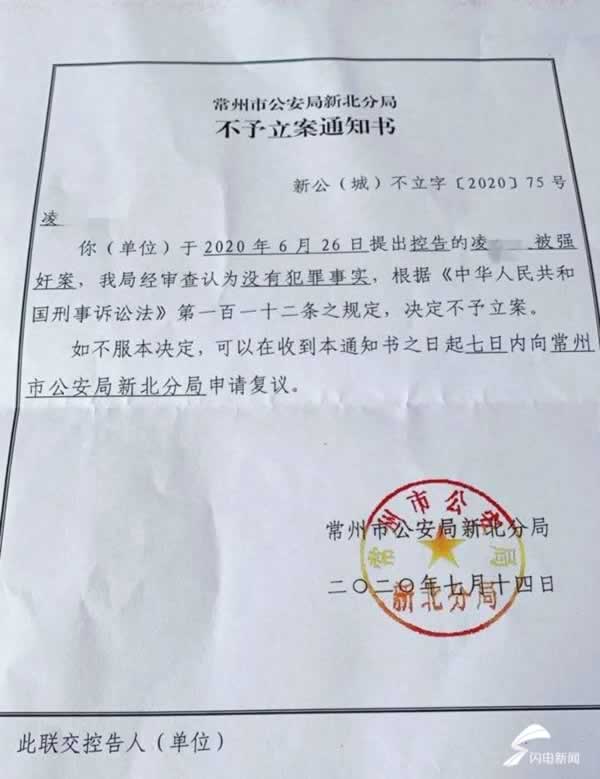 6月26日,凌女士来到常州市公安局新北分局河海派出所报案,经审查警方以“没有犯罪事实”为由,决定不予立案。