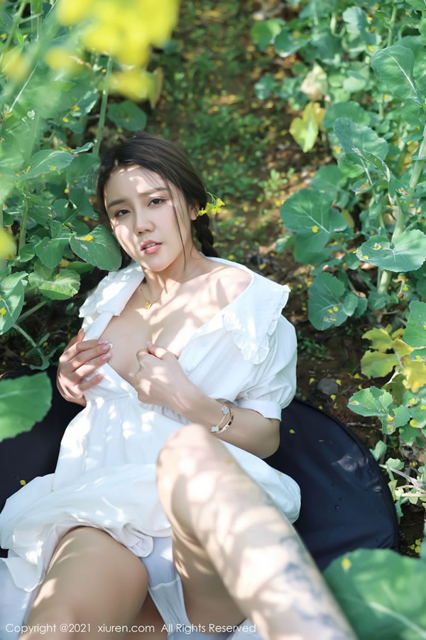 双麻花美女夏西CiCi户外花丛外拍清纯动人