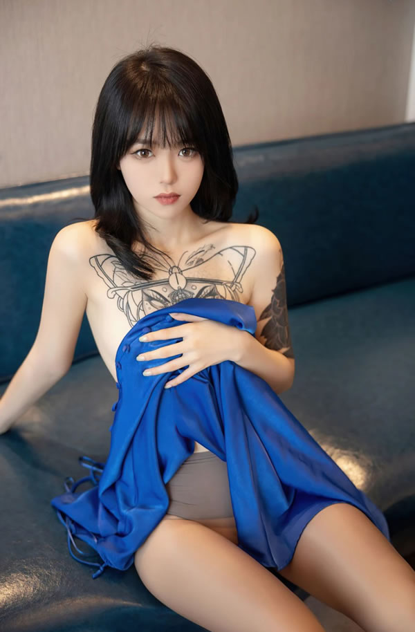 美丽小姐姐Yeon Hwa蓝色格仔小猫咪无圣光