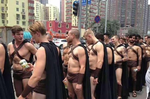 众多外籍人士身穿斯巴达服饰当街聚集时,引来不少网友争相拍照,并在社交平台上迅速传播。从这些图片中可以看到,这群外籍男子有数十人之多,他们上身赤裸、穿着短裤、佩戴披风,装扮为斯巴达勇士的样子。