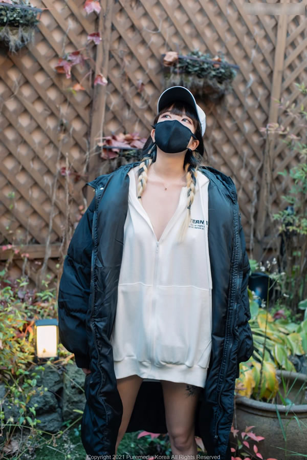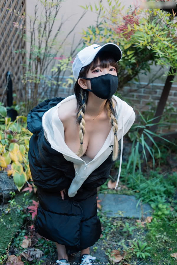 双麻花女生Aram真空羽绒服户外诱惑写真