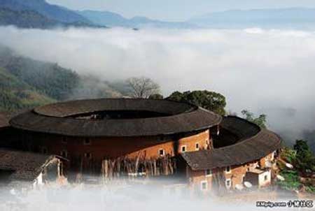 福建土楼产生于宋朝时 代,明、清朝时期逐渐成熟,并一直延续至今。福建土楼是世界上独一无二的山区大型夯土民居建筑,依山就势,布局合理,吸收了中国传统建筑规划的“风水”理 念,适应聚族而居的生活和防御要求,巧妙地利用了山间狭小的平地和当地的生土、木材、鹅卵石等建筑材料,是一种自成体系,具有节约、坚固、防御性强的特 点,又极富美感的生土高层建筑模式。福建土楼的建筑材料甚为奇特,由粘土、糯米、红糖、竹片、水组成,建成的土楼冬暖夏凉,具有很强的抗台风、抗地震能力。
