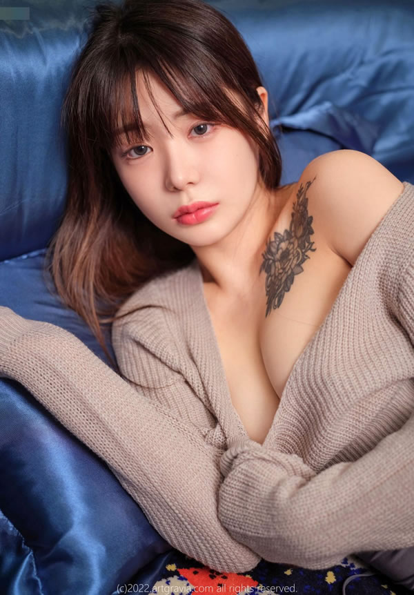 吉它妹妹Wuyo居家蓝绸丝床诱惑写真
