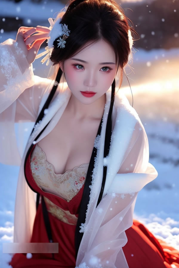 冰肌玉骨的AI古装美女红装艳而不俗